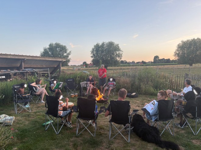 Een tiental kinderen en begeleiders hebben 4 dagen gekampeerd te midden in de natuur van het Pajottenland. De meeste kinderen hadden nog nooit gekampeerd. Op onze kampplaats zelf waren zoveel mogelijkheden om te sporten, te spelen en ons te amuseren dat we ons geen minuut hebben verveeld. En we hebben heel lekker gegeten.